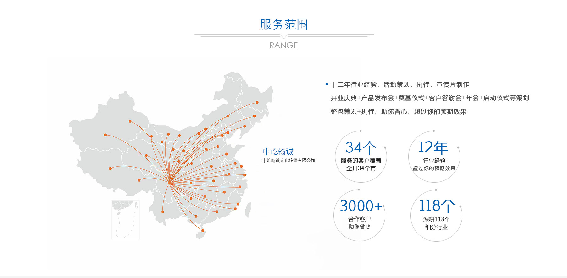 歷經(jīng)多年深耕,公司已形成 “公關(guān)活動、展覽展示、品牌戰(zhàn)略服務(wù)、影視制作” 四大核心業(yè)務(wù)板塊。從創(chuàng)意策劃到落地執(zhí)行,從品牌塑造到視覺呈現(xiàn),從活動運營到影像記錄,中屹翰誠始終以專業(yè)視角與創(chuàng)新理念,滿足客戶多元化需求。憑借出色的服務(wù)品質(zhì)與專業(yè)能力,公司在市場中穩(wěn)步前行,服務(wù)版圖已拓展至政府、金融、媒體、演藝、建筑等 118 個細(xì)分行業(yè),與超 3000 家客戶建立深度合作關(guān)系,以實力贏得廣泛認(rèn)可與信賴。